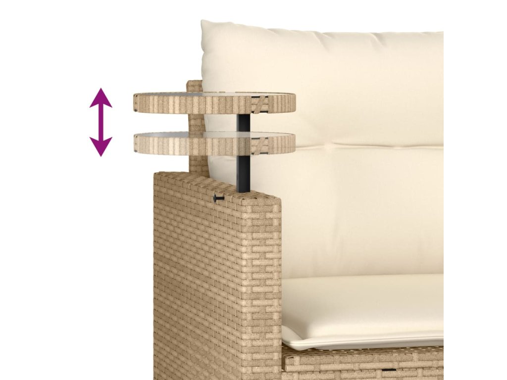 - Pohodlný bočný stolík: Tento vonkajší nábytok je vybavený výškovo nastaviteľným bočným stolíkom na podrúčke, ktorý poskytuje pohodlné miesto na odkladanie potrebných vecí.