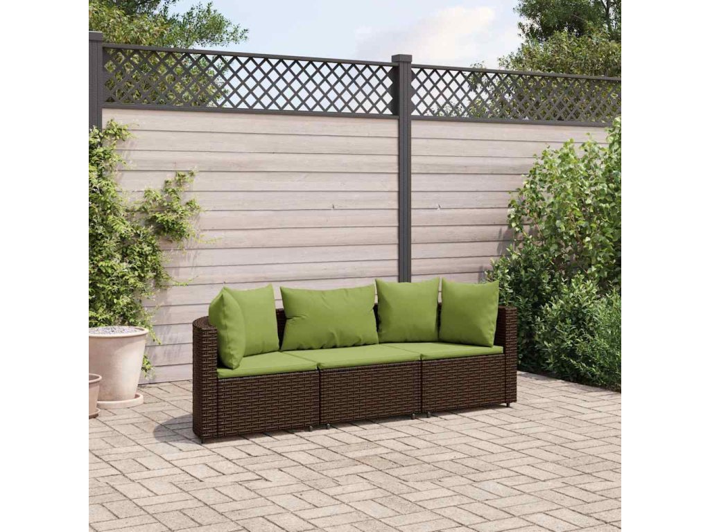 vidaXL 3-dielna záhradná súprava pohoviek s vankúšmi hnedá polyratan