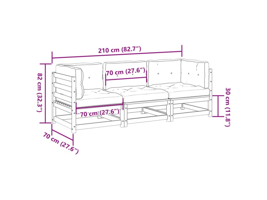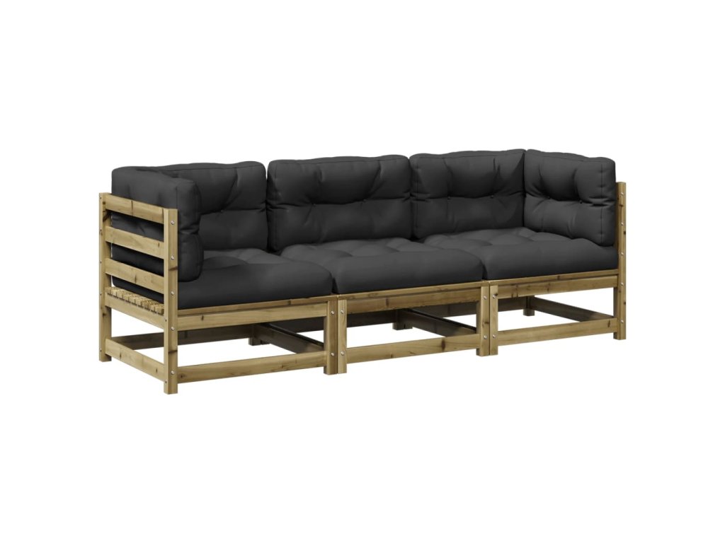 vidaXL 3-dielna záhradná súprava pohoviek s vankúšmi impregn. borovica