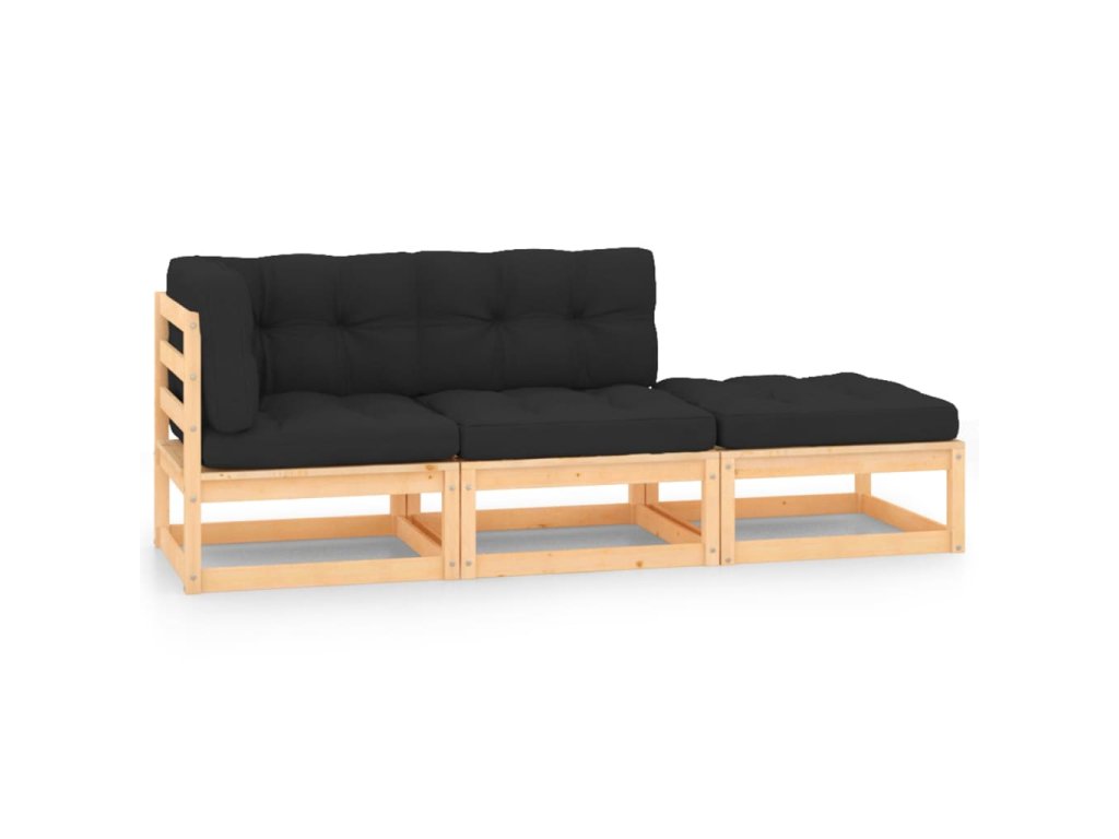 vidaXL 3-dielna záhradná súprava s podložkami, borovicový masív