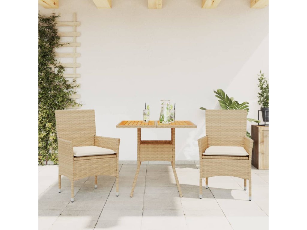 vidaXL 3-dielna záhradná súprava s vankúšmi béžová polyratan a akácia