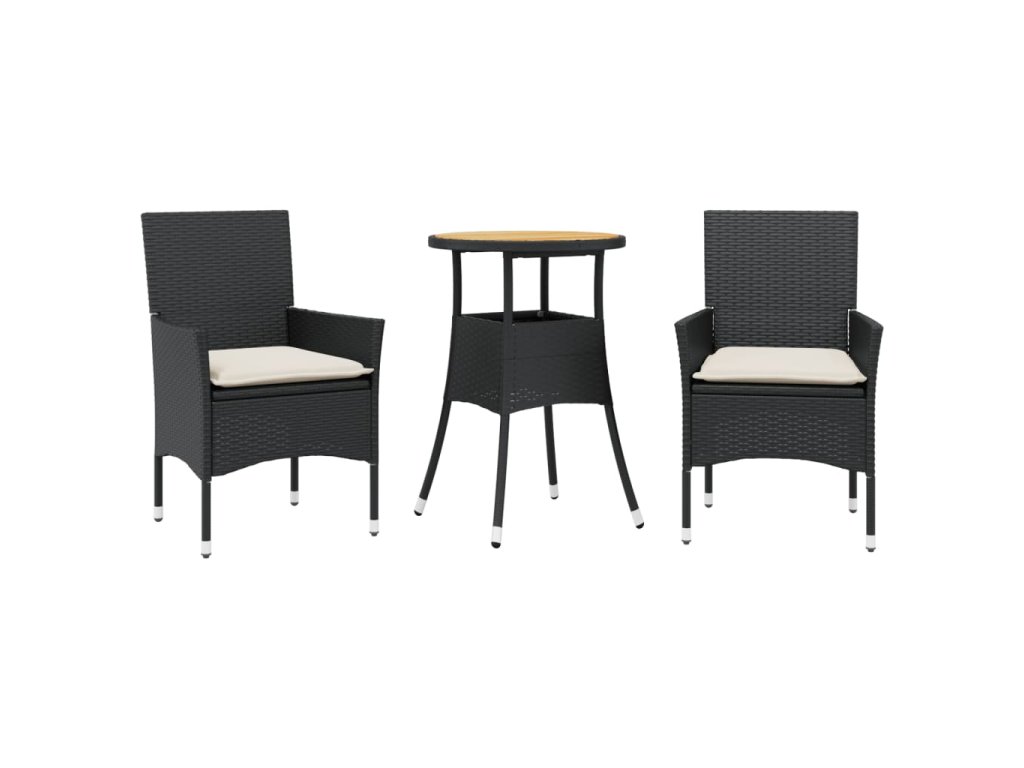 vidaXL 3-dielna záhradná súprava s vankúšmi čierna polyratan a akácia