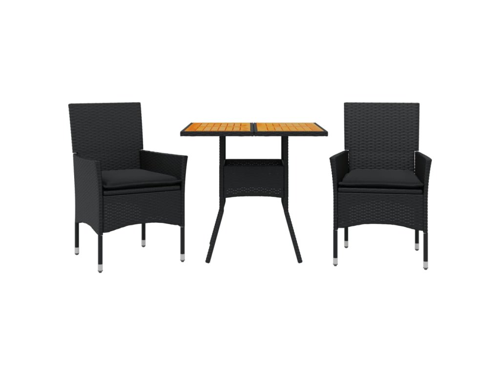vidaXL 3-dielna záhradná súprava s vankúšmi čierna polyratan a akácia