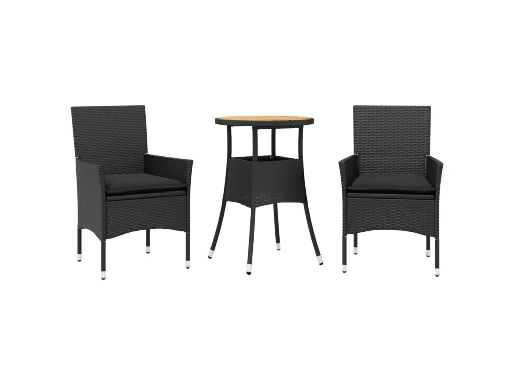 vidaXL 3-dielna záhradná súprava s vankúšmi čierna polyratan a akácia