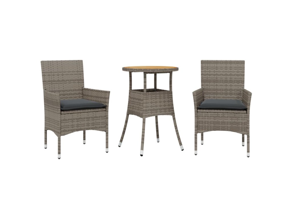 vidaXL 3-dielna záhradná súprava s vankúšmi sivá polyratan a akácia