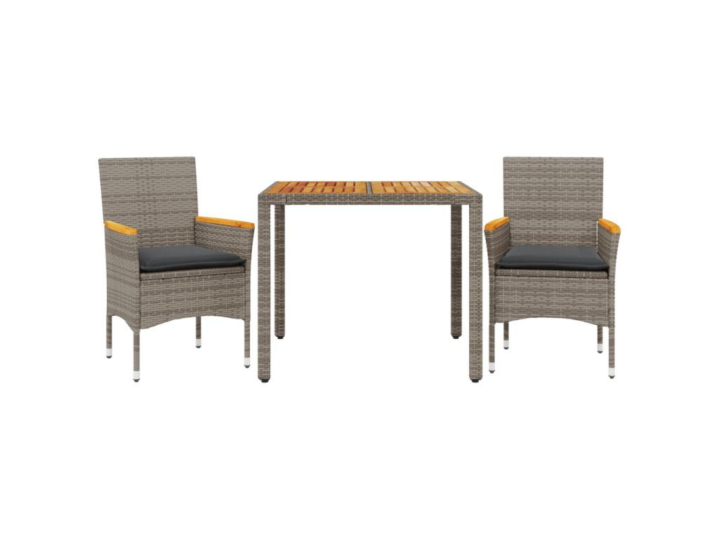 vidaXL 3-dielna záhradná súprava s vankúšmi sivá polyratan a akácia