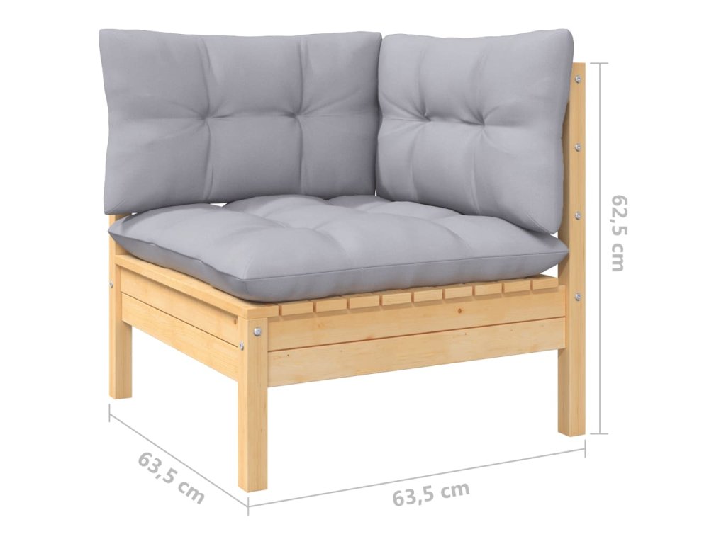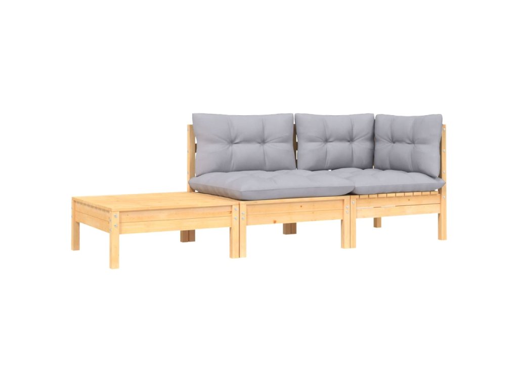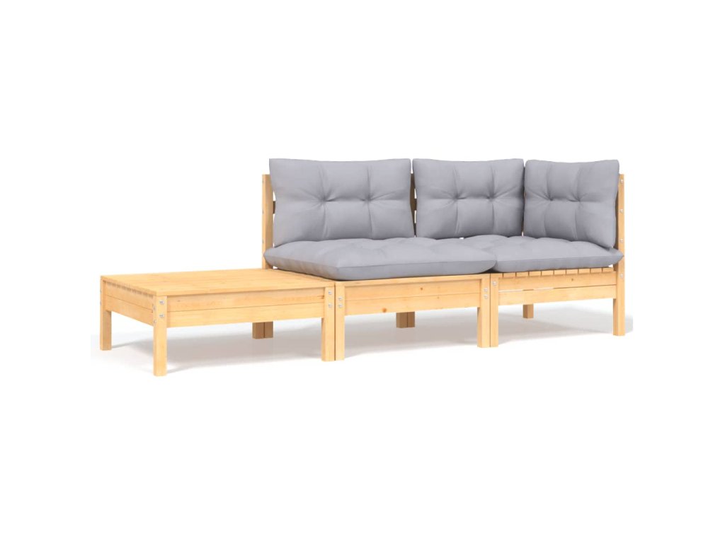 vidaXL 3-dielna záhradná súprava so sivými sedákmi borovicový masív