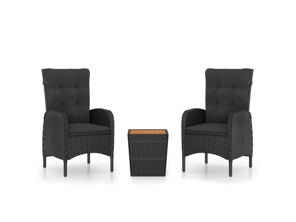 vidaXL 3-dielny záhradný bistro set čierny polyratan a akáciové drevo