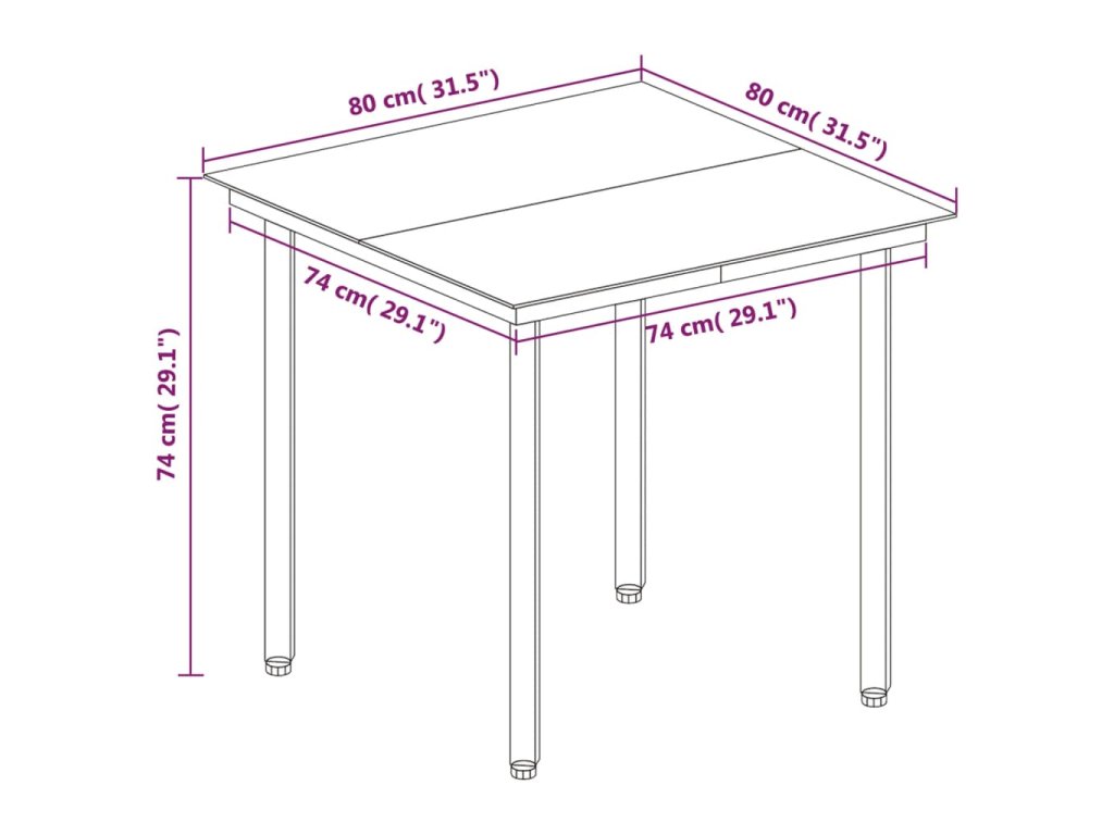 - Rozmery stola: 80 x 80 x 74 cm (D x Š x V)
