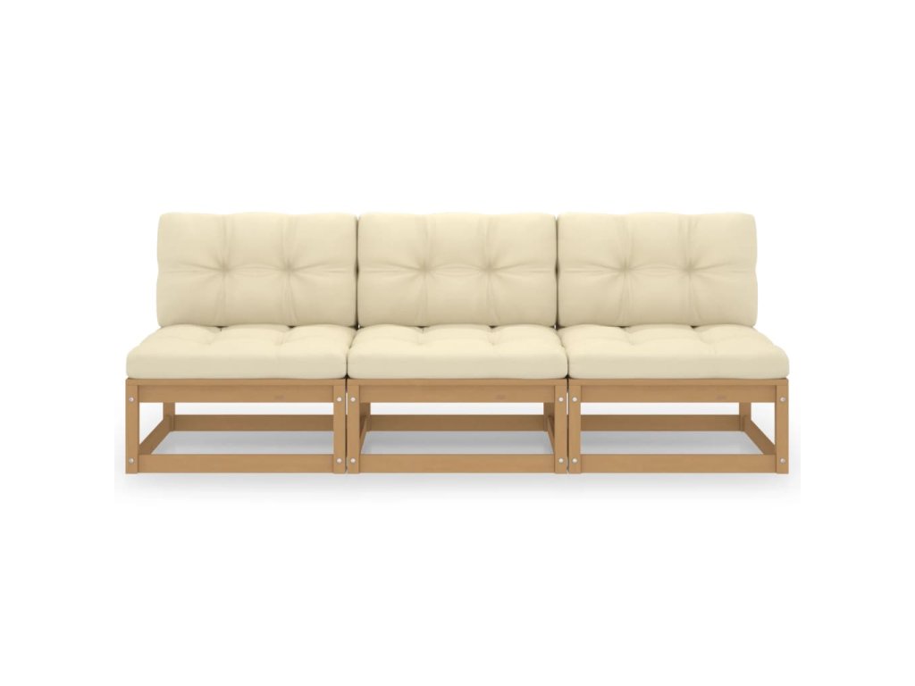 vidaXL 3-miesta pohovka s podložkami borovicový masív