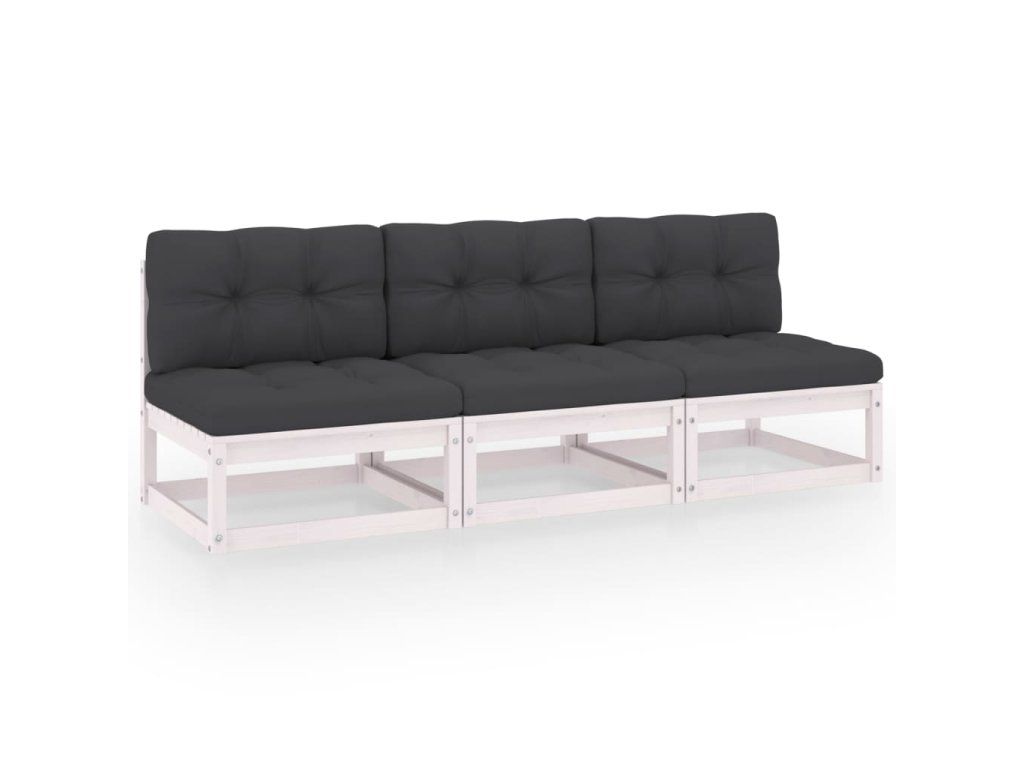 vidaXL 3-miesta pohovka s podložkami borovicový masív