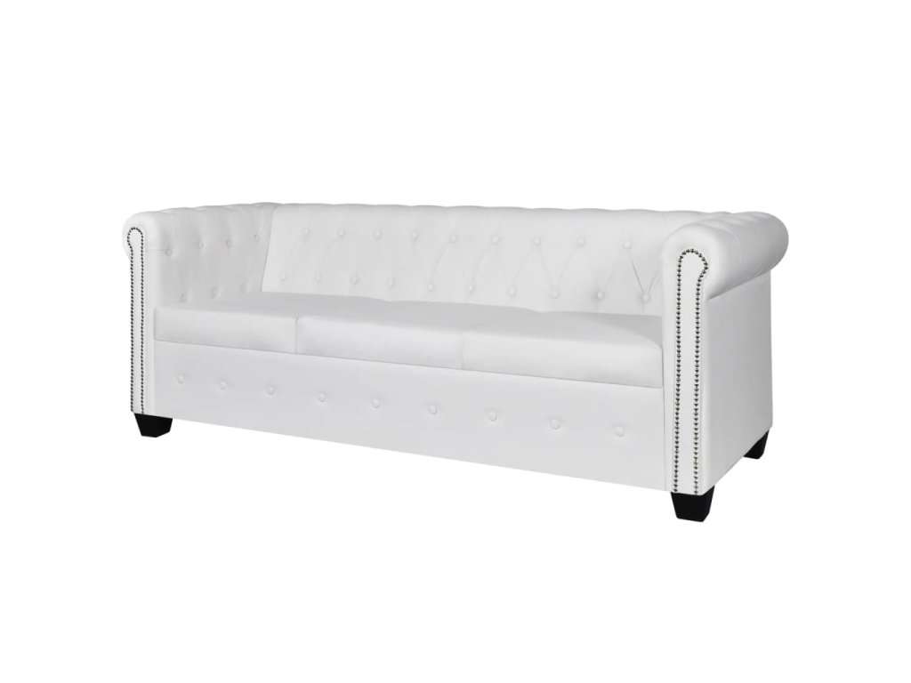 vidaXL 3-miestna pohovka Chesterfield, umelá koža, biela