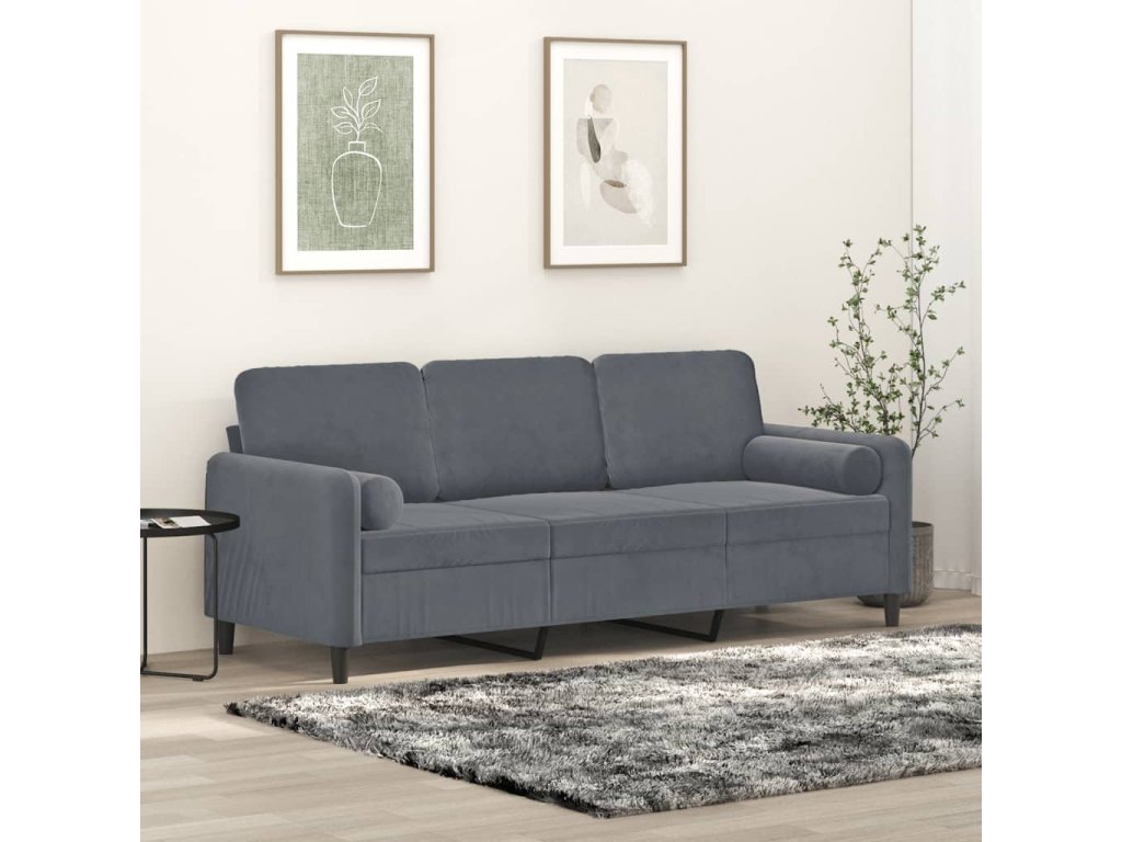 vidaXL 3-miestna pohovka s vankúšmi tmavosivá 180 cm zamat