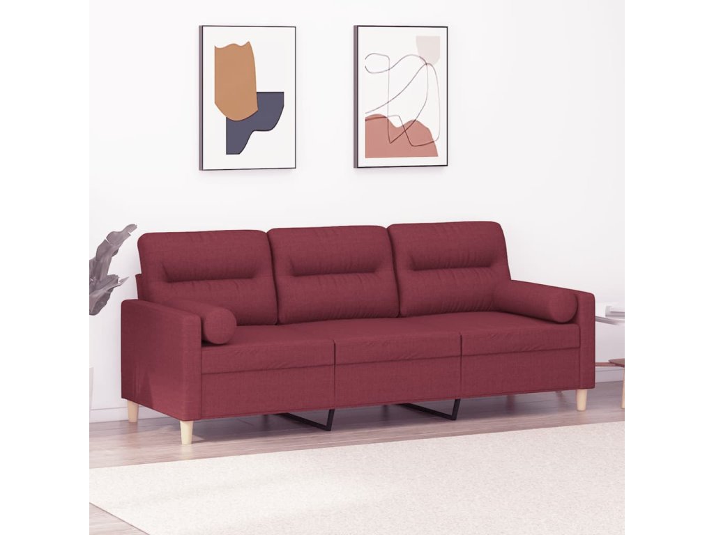vidaXL 3-miestna pohovka s vankúšmi vínovočervená 180 cm látka