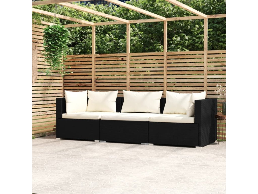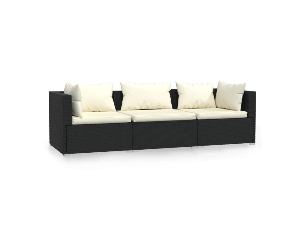 vidaXL 3-miestna pohovka so sedákmi a vankúšmi čierna polyratanová