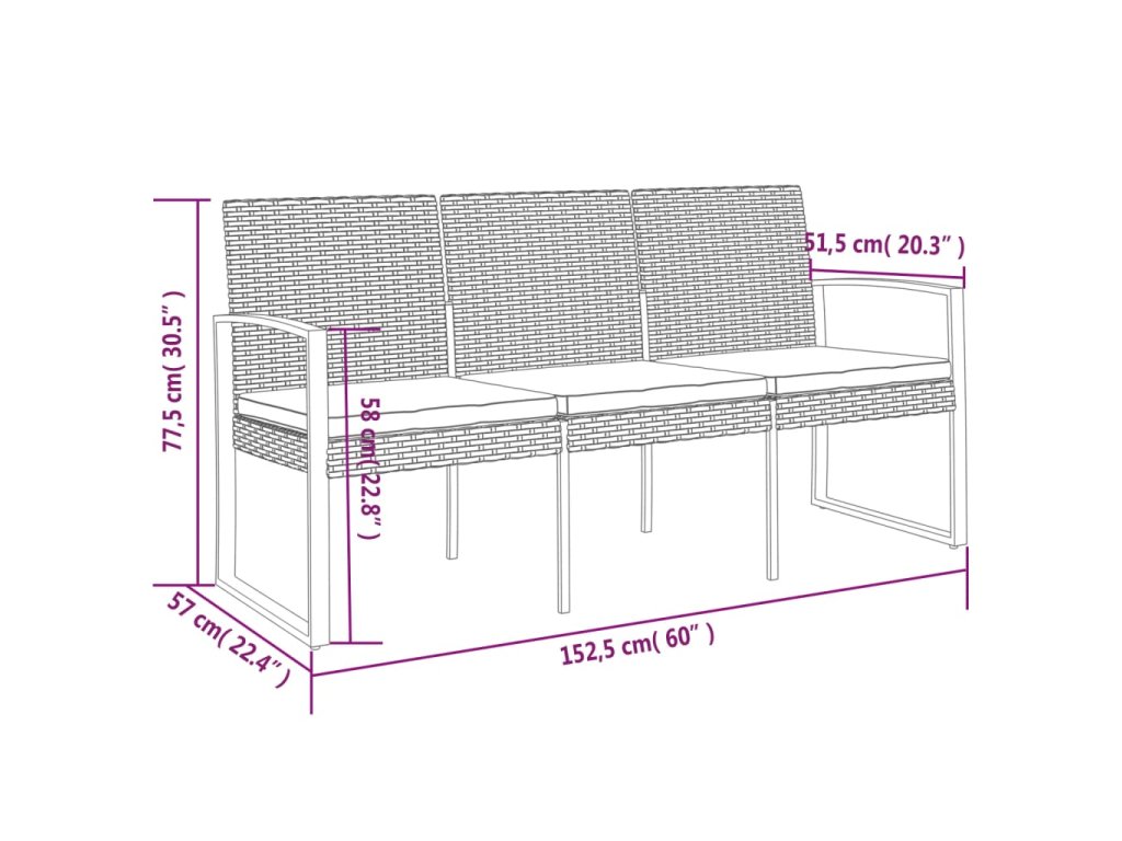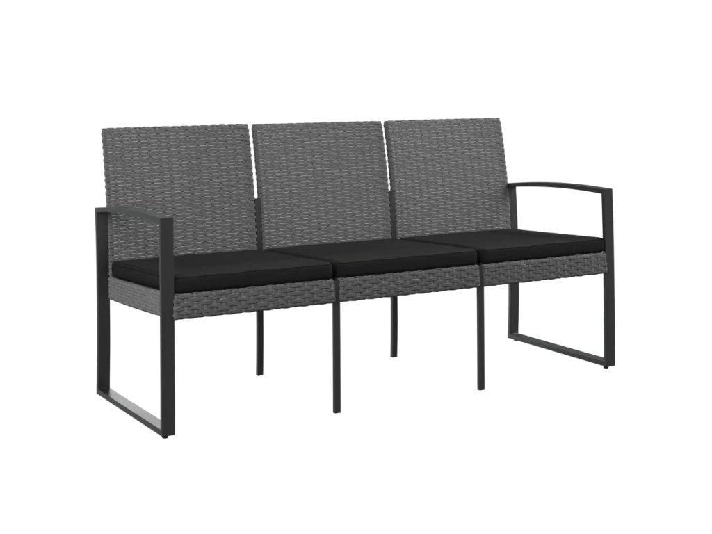 vidaXL 3-miestna záhradná lavička s podložkami tmavo sivá PP ratan