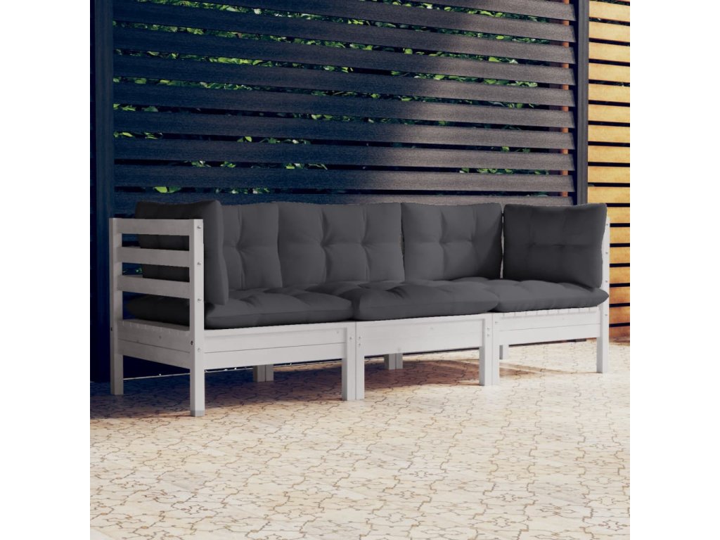 vidaXL 3-miestna záhradná pohovka s antracitovými vankúšmi borovicový masív