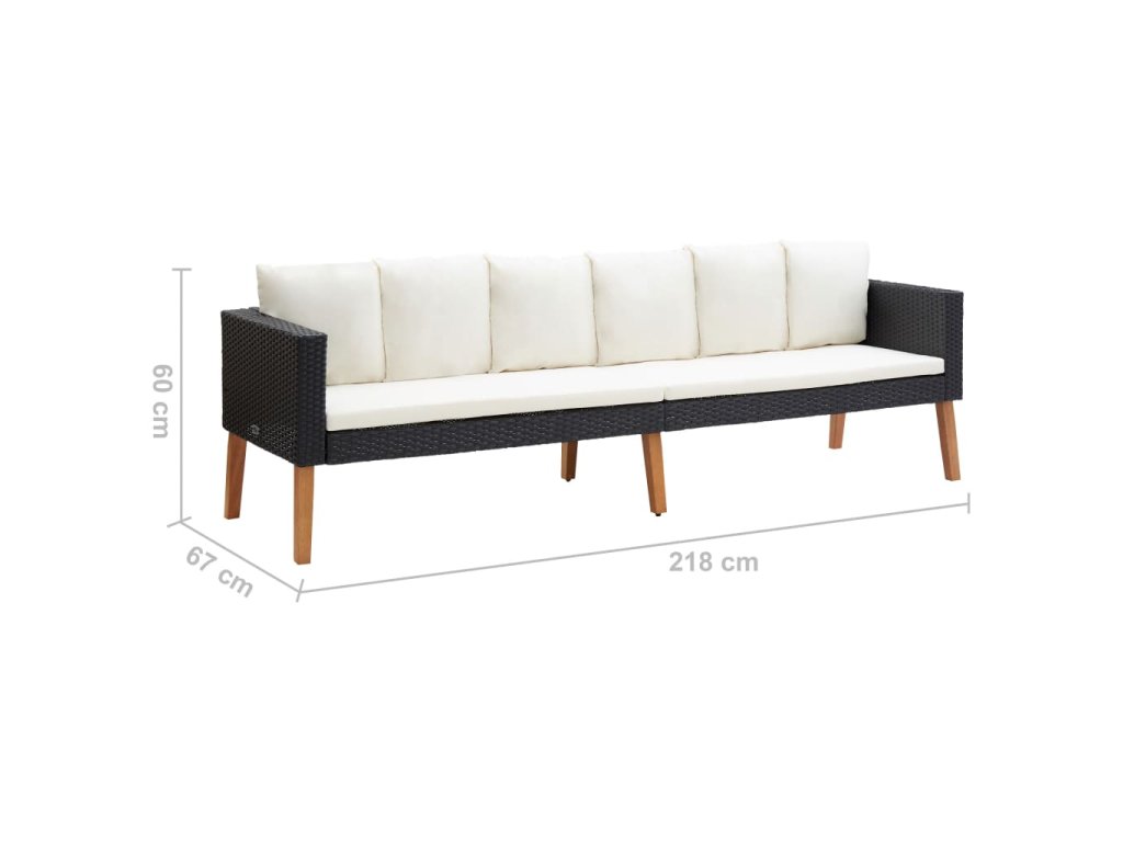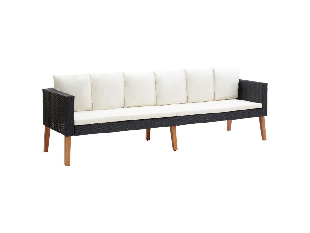 vidaXL 3-miestna záhradná pohovka s podložkami, polyratan, čierna