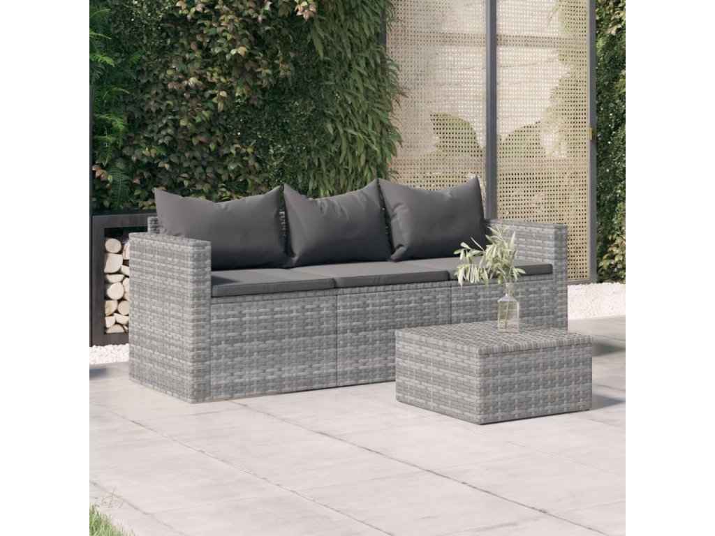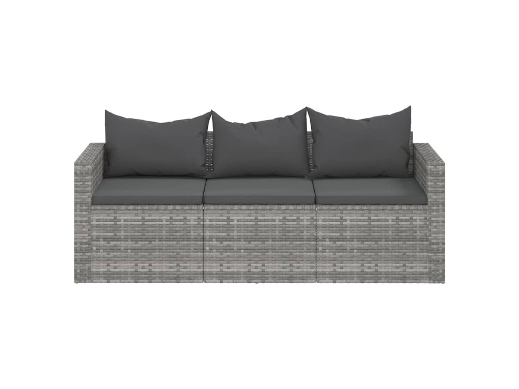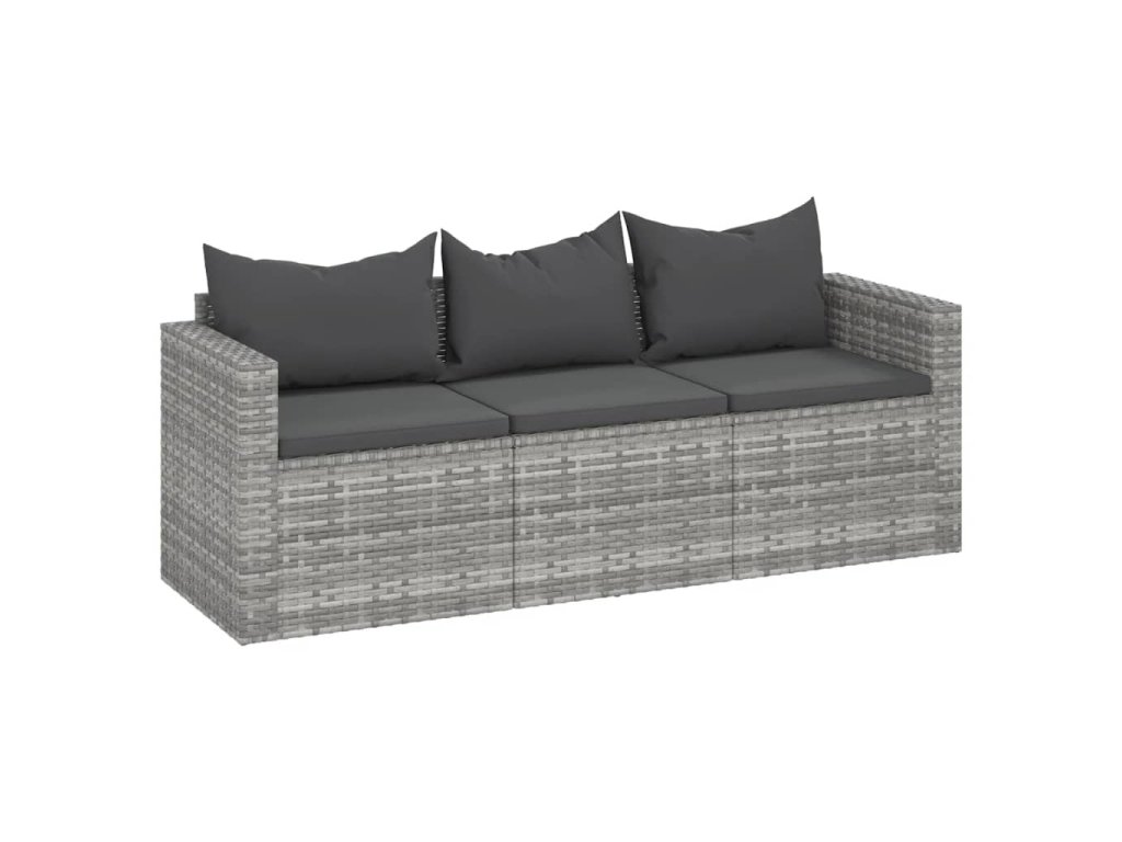 vidaXL 3-miestna záhradná pohovka s podložkami sivá polyratan