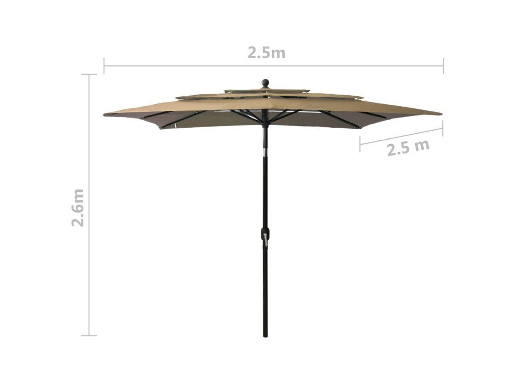 vidaXL 3-stupňový slnečník s hliníkovou tyčou sivohnedý 2,5x2,5 m