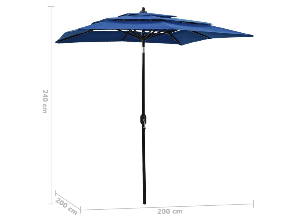 vidaXL 3-stupňový záhradný slnečník, hliníková tyč, azúrový 2x2 m