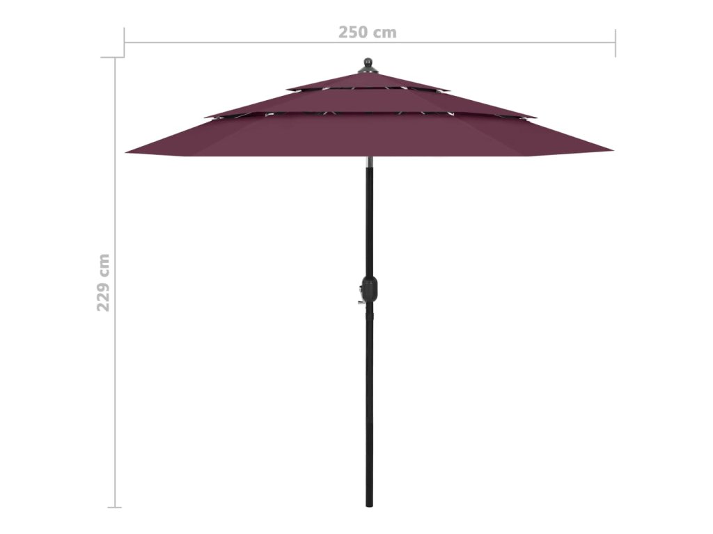 vidaXL 3-stupňový záhradný slnečník, hliníková tyč, bordový 2,5 m