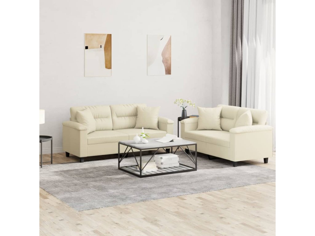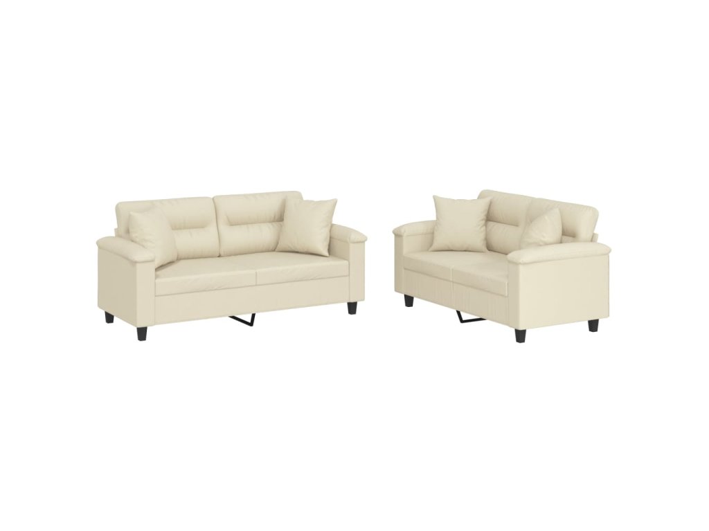 vidaXL 4-dielna sedacia súprava s vankúšmi krémová umelá koža