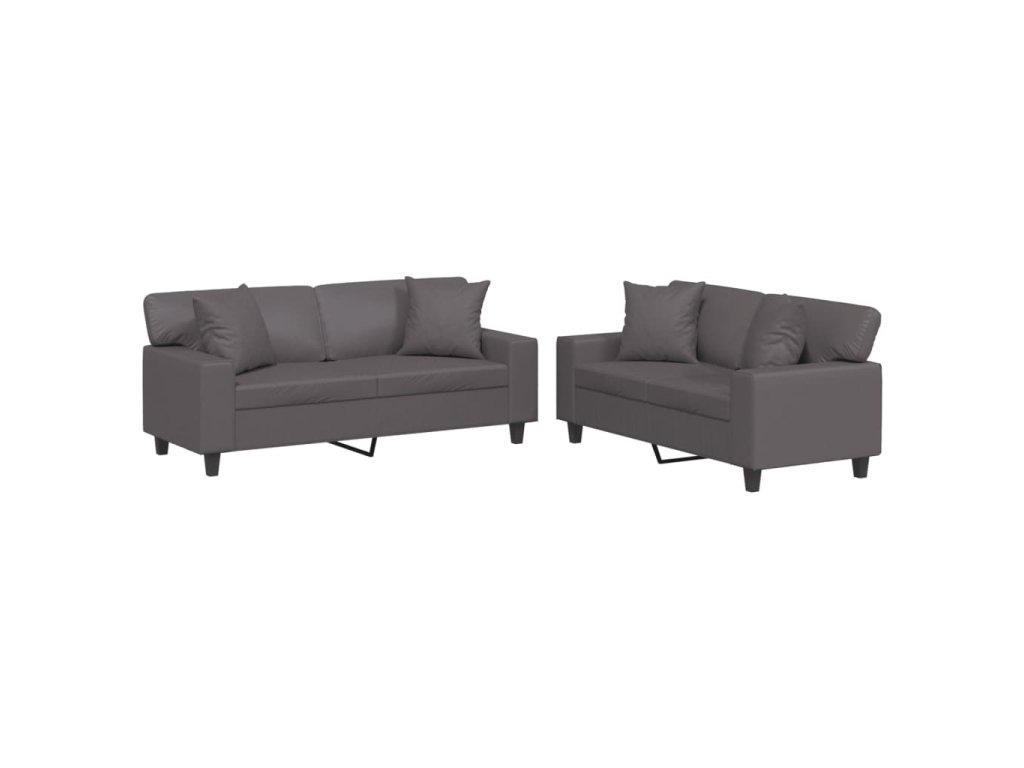 vidaXL 4-dielna sedacia súprava s vankúšmi sivá umelá koža