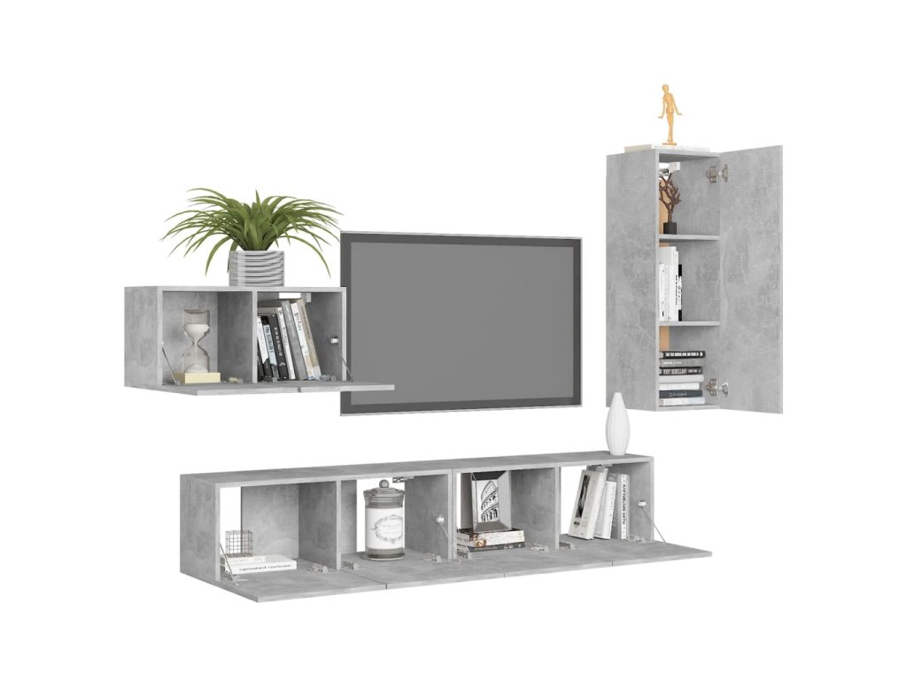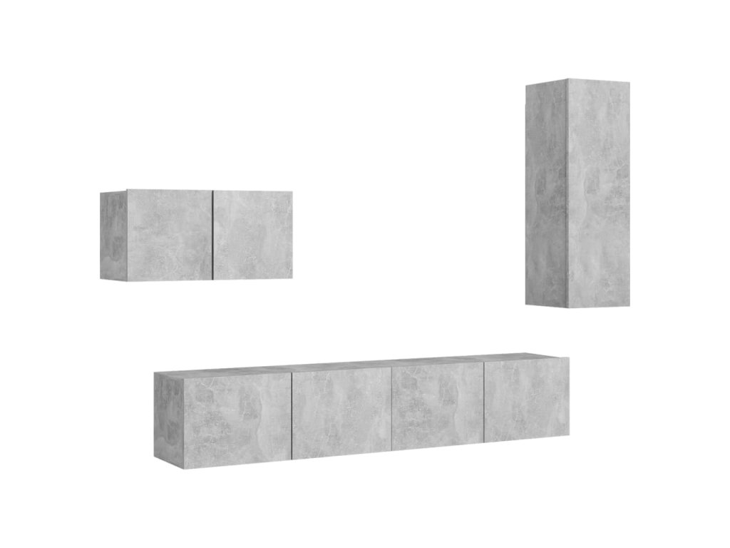vidaXL 4-dielna súprava TV skriniek, betónovo sivá, kompozitné drevo
