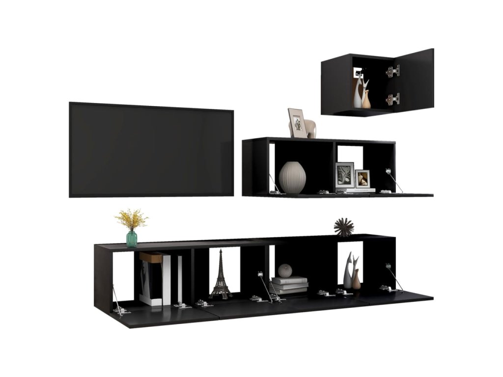 vidaXL 4-dielna súprava TV skriniek, čierna, kompozitné drevo