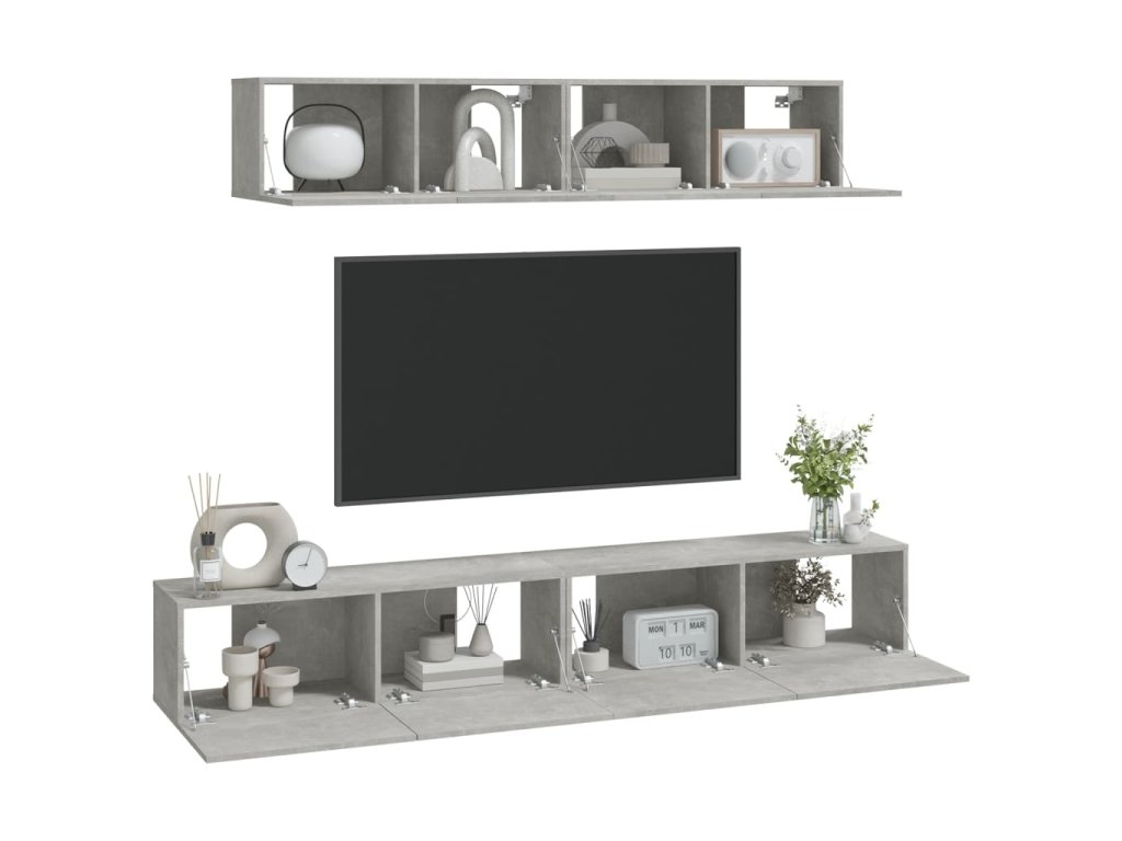 vidaXL 4-dielna súprava TV skriniek betónovosivá spracované drevo