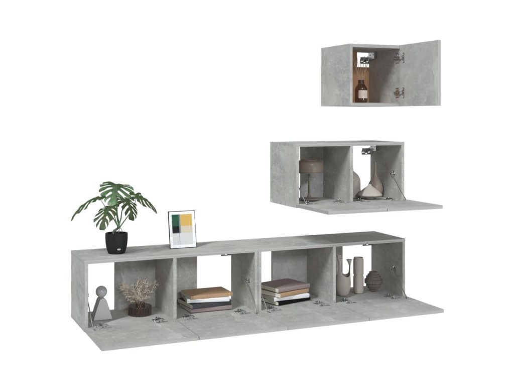 vidaXL 4-dielna súprava TV skriniek betónovosivá spracované drevo