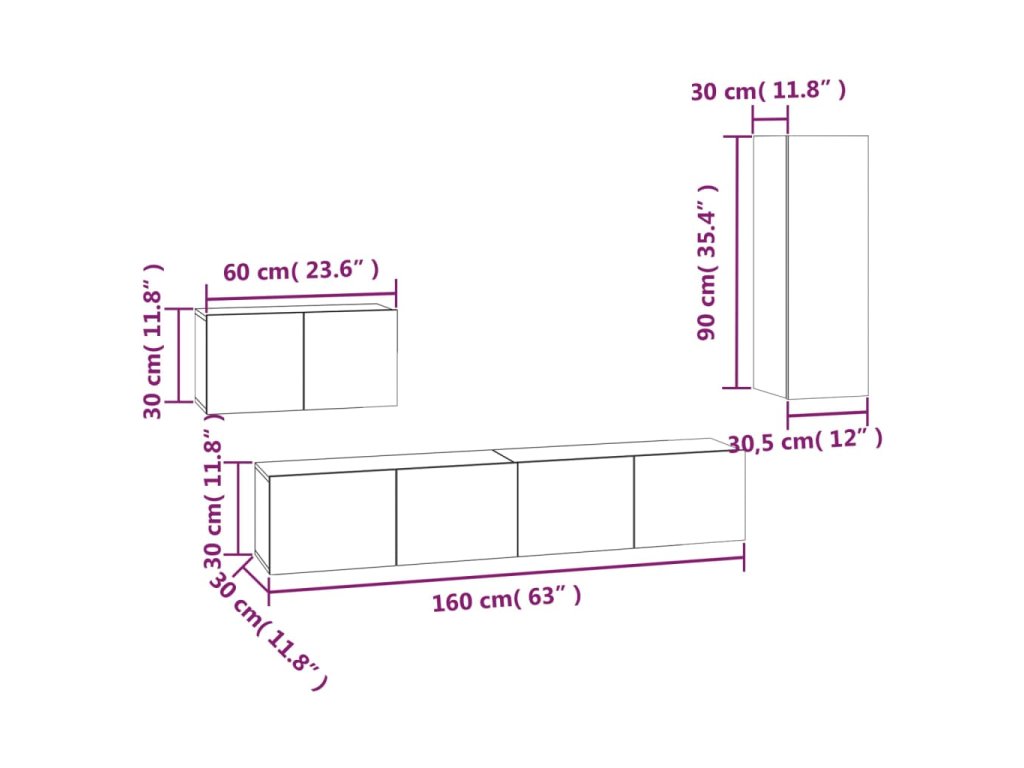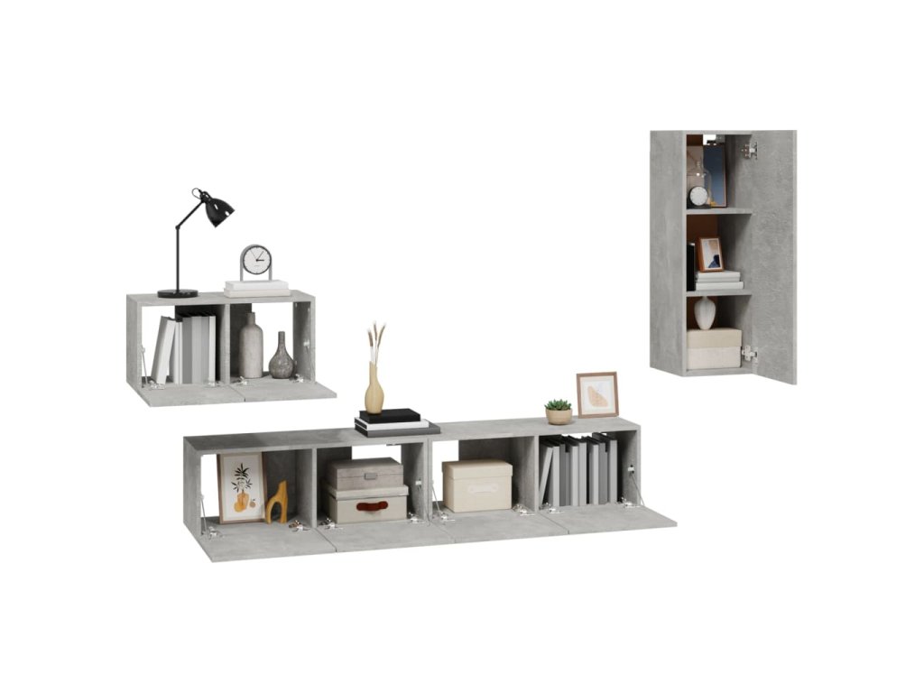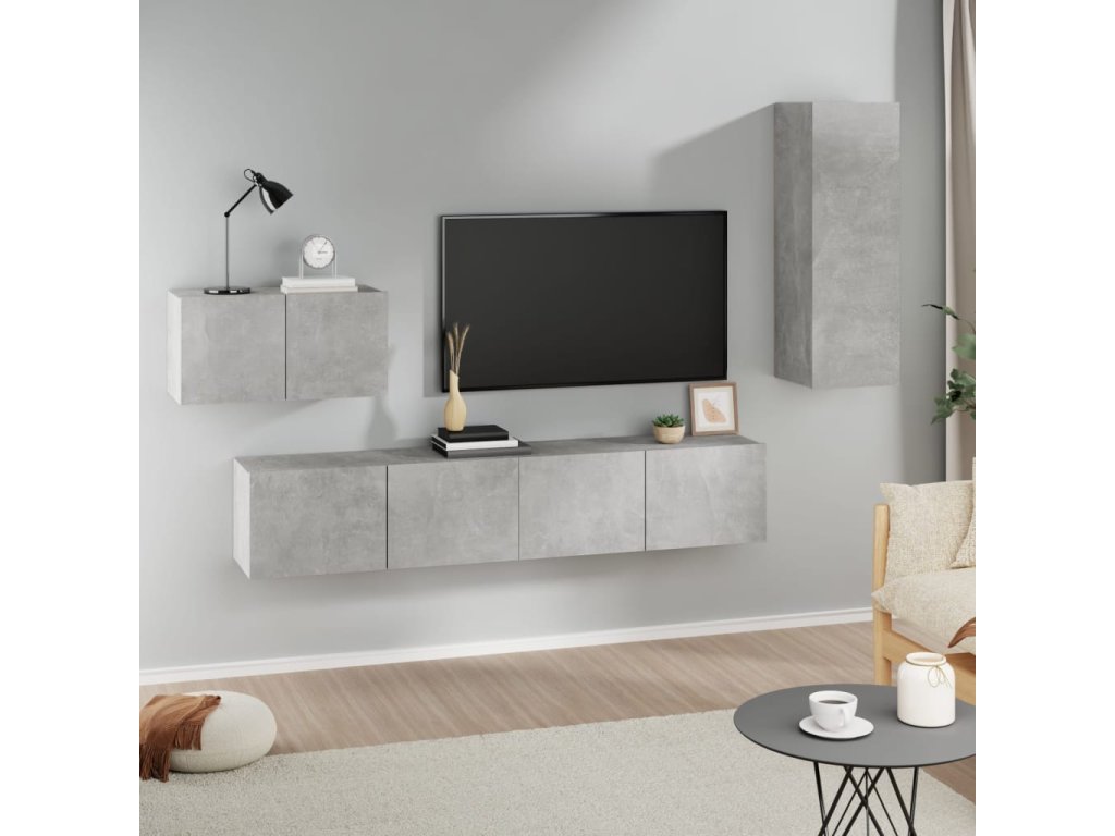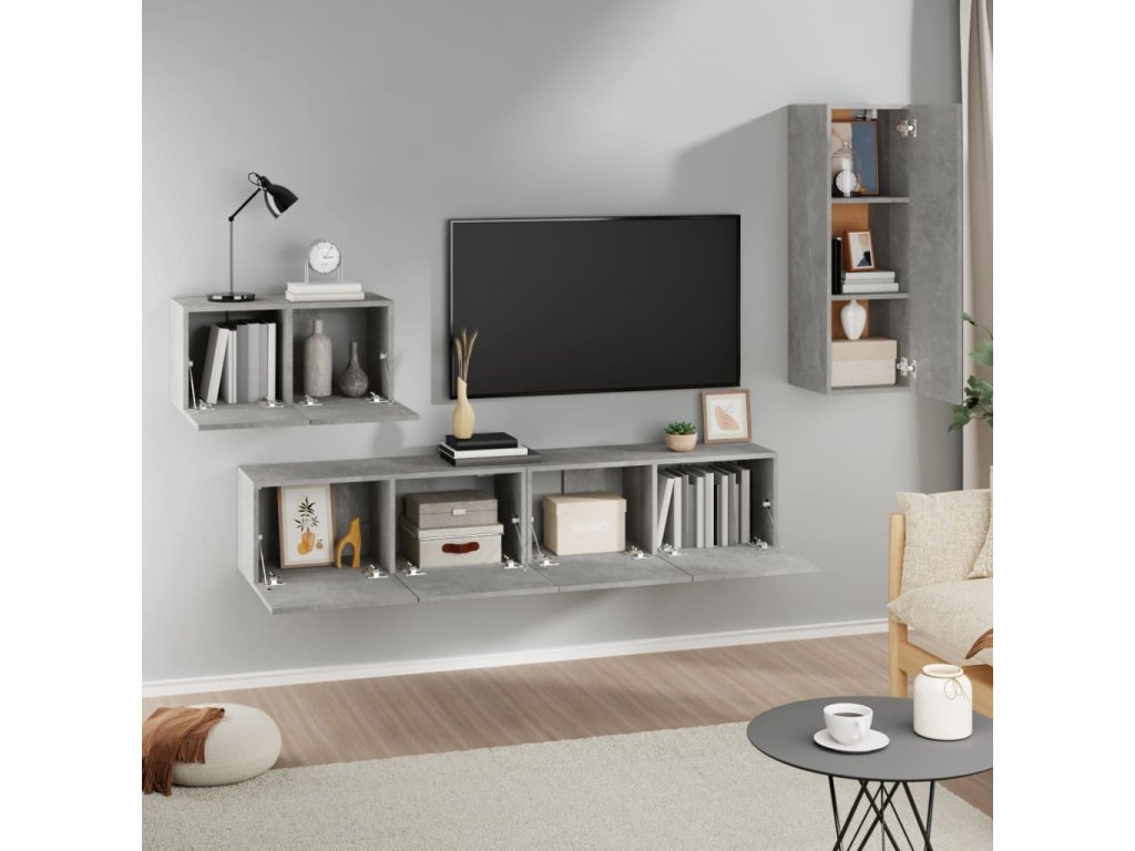 vidaXL 4-dielna súprava TV skriniek betónovosivá spracované drevo