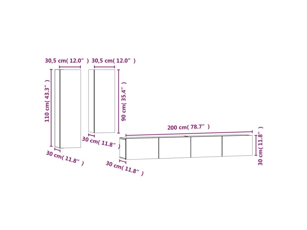 vidaXL 4-dielna súprava TV skriniek betónovosivá spracované drevo