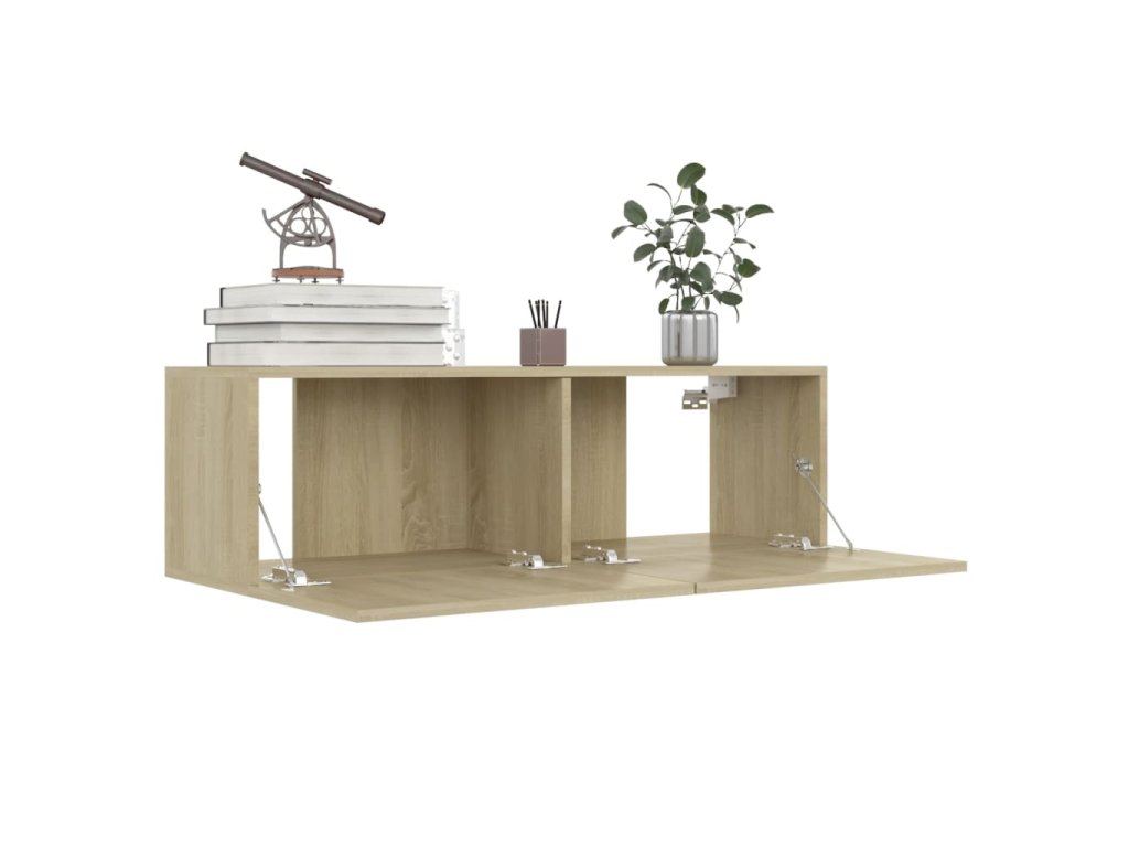 Televízny stolík je pripevnený k stene, čo z neho robí nadčasový doplnok do vašej domácnosti. Poskytuje dostatok úložného priestoru, vďaka čomu je ideálnym miestom na uloženie všetkých kníh, časopisov, diskov DVD alebo iných predmetov. Stereo skrinka sa ľahko udržiava a čistí vlhkou handričkou.