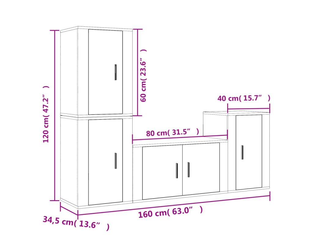 vidaXL 4-dielna súprava TV skriniek dub sonoma spracované drevo