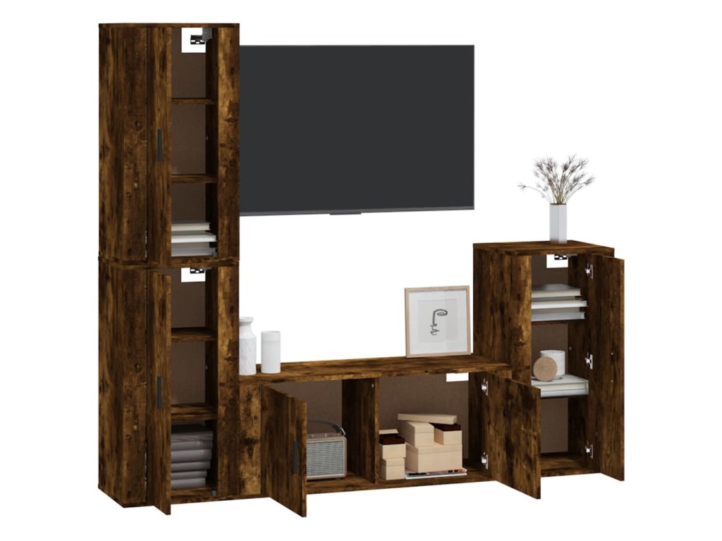 vidaXL 4-dielna súprava TV skriniek dymový dub spracované drevo