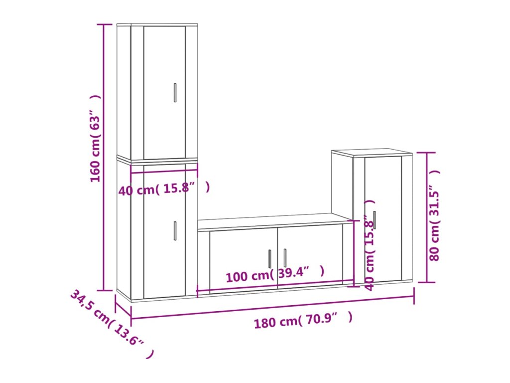 - 3 x TV skrinka: 40 x 34,5 x 80 cm (D x Š x V)