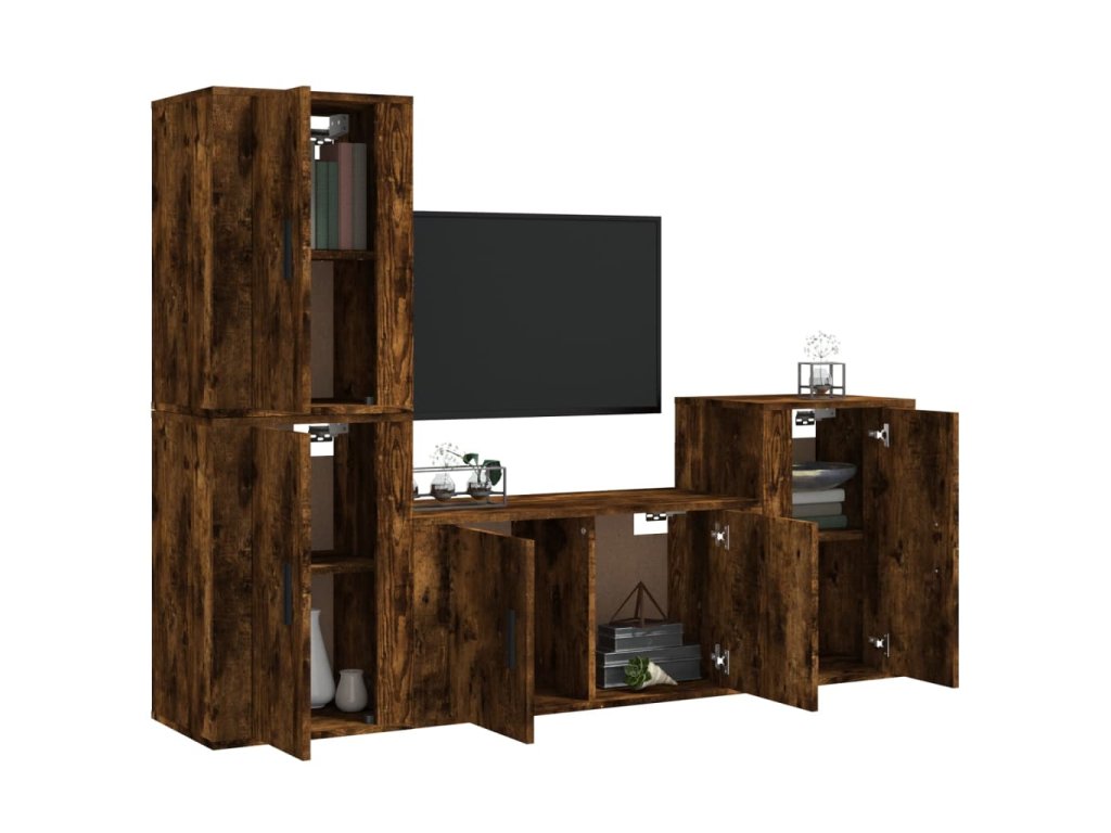 vidaXL 4-dielna súprava TV skriniek dymový dub spracované drevo