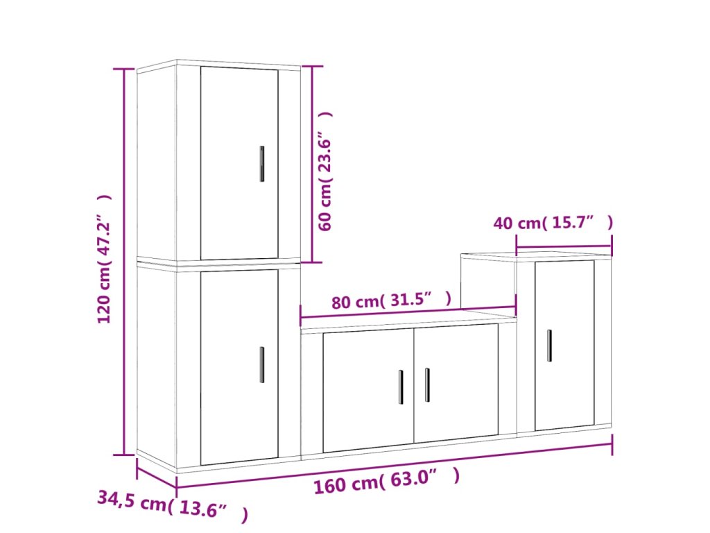 - 3 x TV skrinka: 40 x 34,5 x 60 cm (D x Š x V)