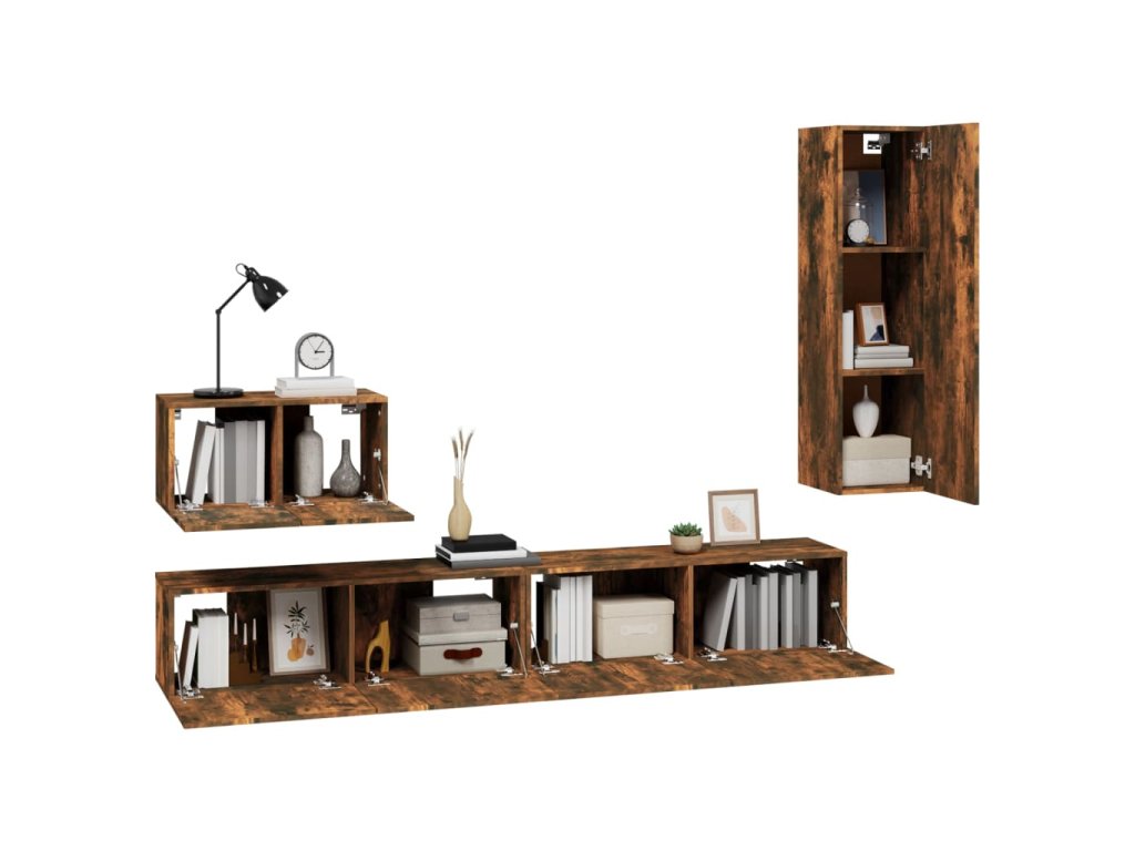 vidaXL 4-dielna súprava TV skriniek dymový dub spracované drevo