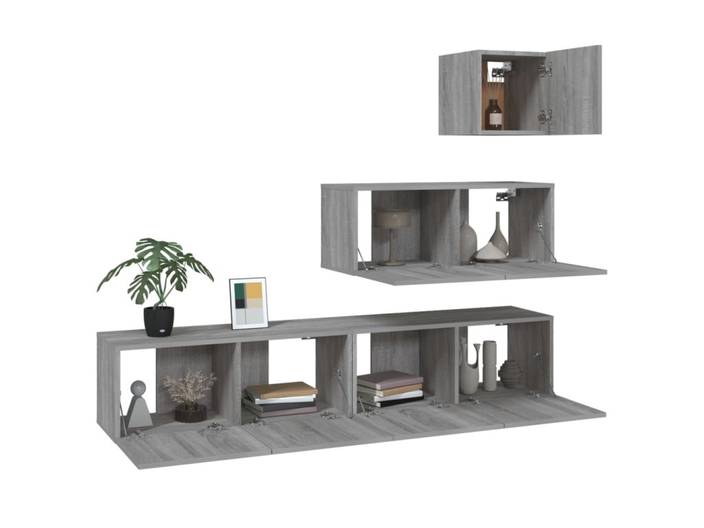 vidaXL 4-dielna súprava TV skriniek sivý dub sonoma spracované drevo