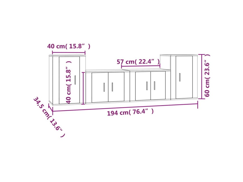 vidaXL 4-dielna súprava TV skriniek sivý dub sonoma spracované drevo
