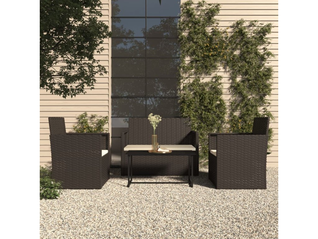 vidaXL 4-dielna vonkajšia sedacia súprava s vankúšmi polyratan čierna
