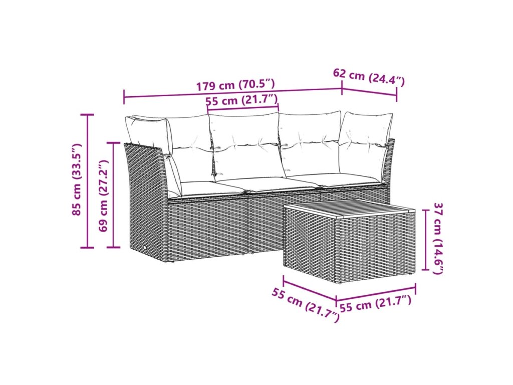 Táto záhradná sedacia súprava je dokonalým doplnkom na váš dvor, terasu alebo verandu, a poskytuje pohodlný a príjemný priestor na rozhovory s rodinou a priateľmi alebo jednoducho na relaxáciu a užívanie si pobytu vonku.