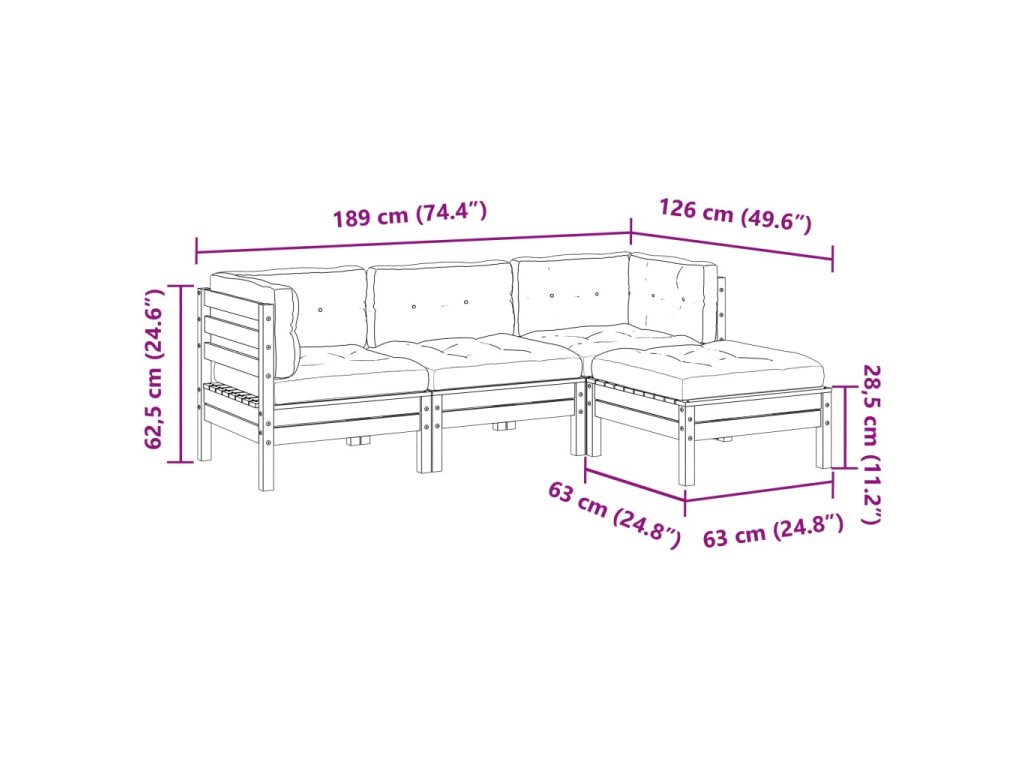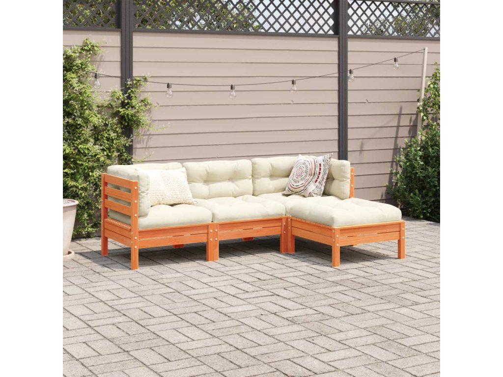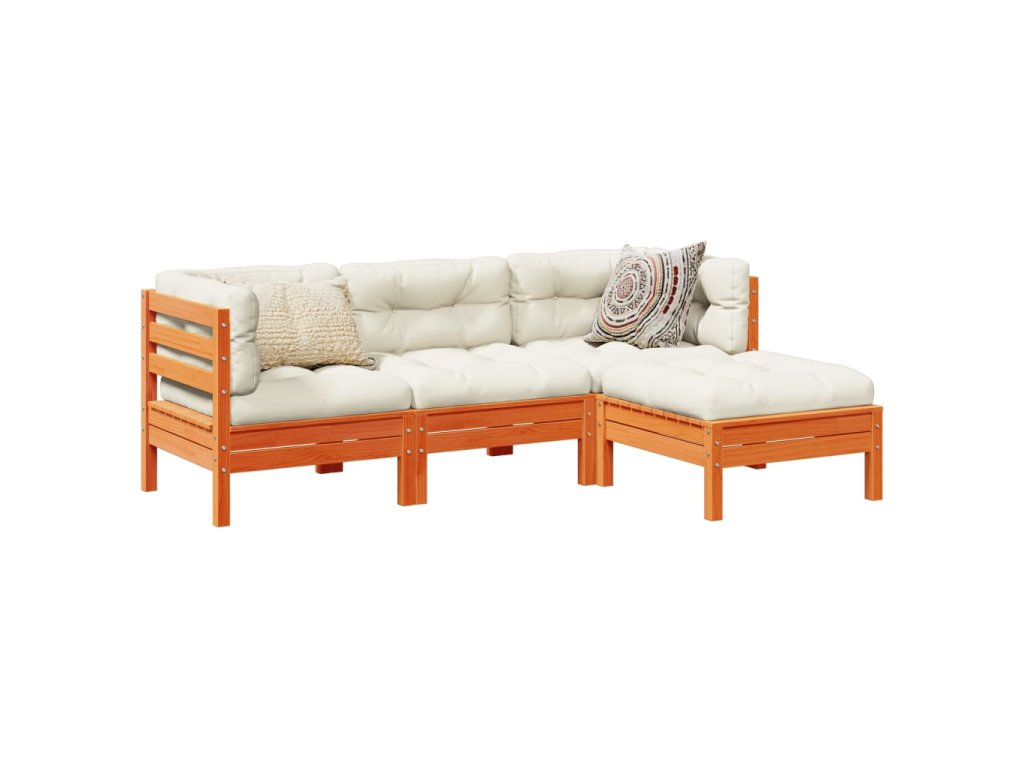 vidaXL 4-dielna záhr.súprava pohoviek s vankúšmi voskovohnedá borovica