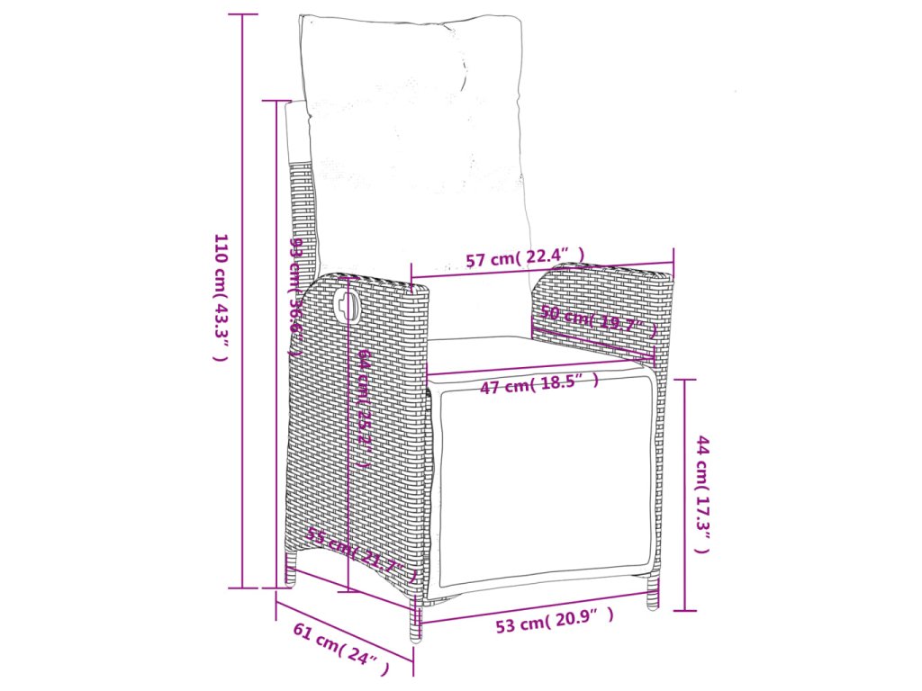 - Rozmery v polohe na sedenie: 57 x 61 x 93 cm (Š x H x V)