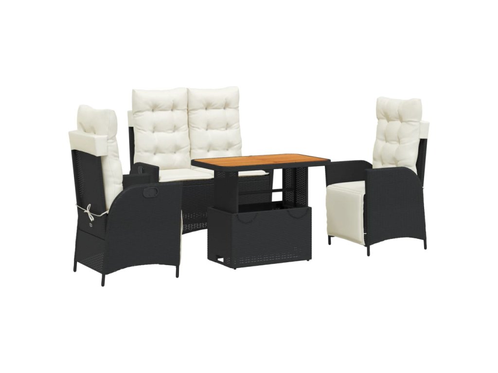 vidaXL 4-dielna záhradná jedálenská sada s vankúšmi čierna polyratan