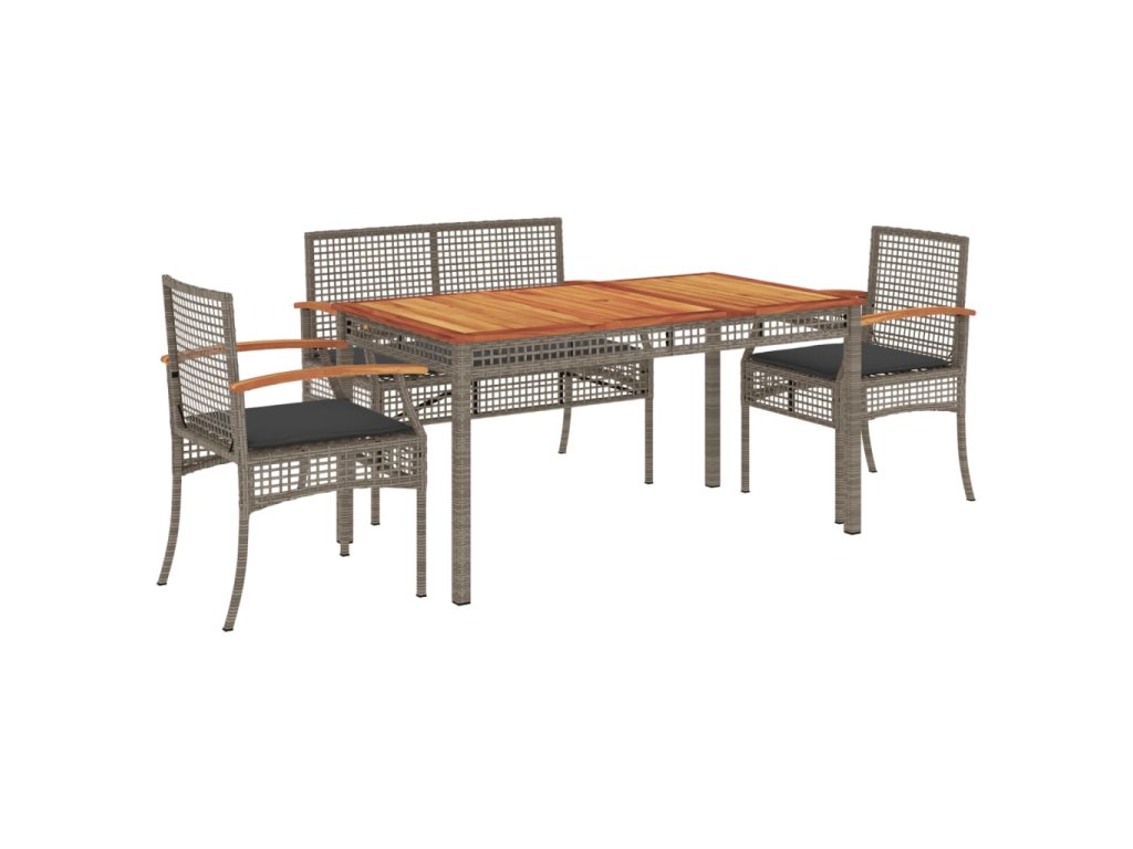 - Materiál: PE ratan, práškovaná oceľ, masívne akáciové drevo s olejovým náterom