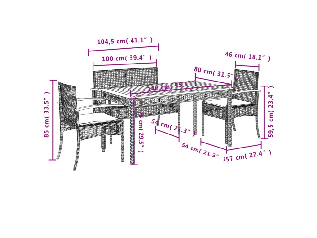 Táto záhradná jedálenská súprava je skvelou voľbou na stolovanie pod holým nebom alebo len tak na oddych v záhrade, na dvore alebo na terase.